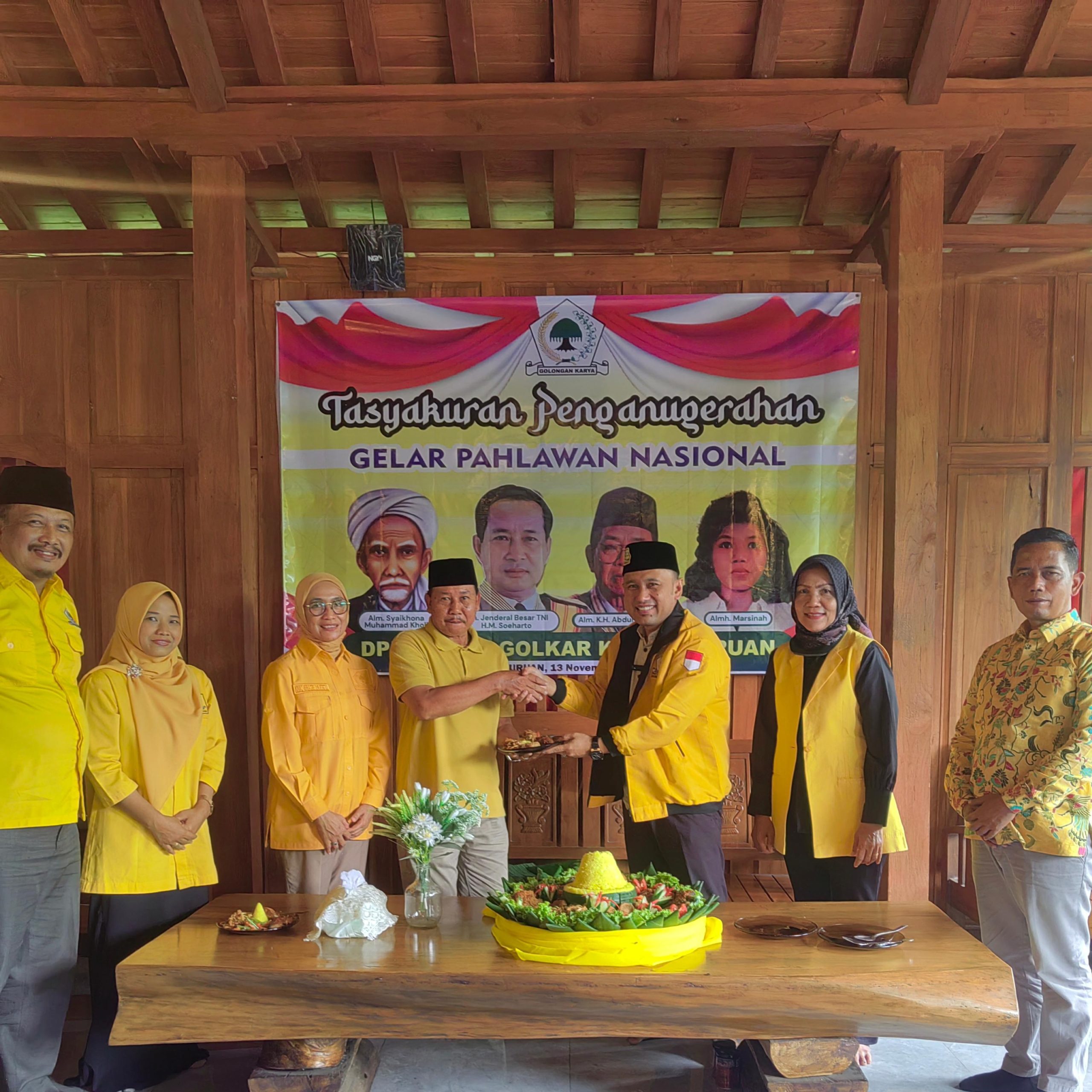 PASURUAN, Fyi.co.id -Dewan Pimpinan Daerah (DPD) Partai Golkar Kabupaten Pasuruan menggelar acara tasyakuran sebagai ungkapan rasa syukur atas penganugerahan gelar Pahlawan Nasional oleh Presiden Republik Indonesia, Prabowo Subianto, kepada sepuluh tokoh bangsa.